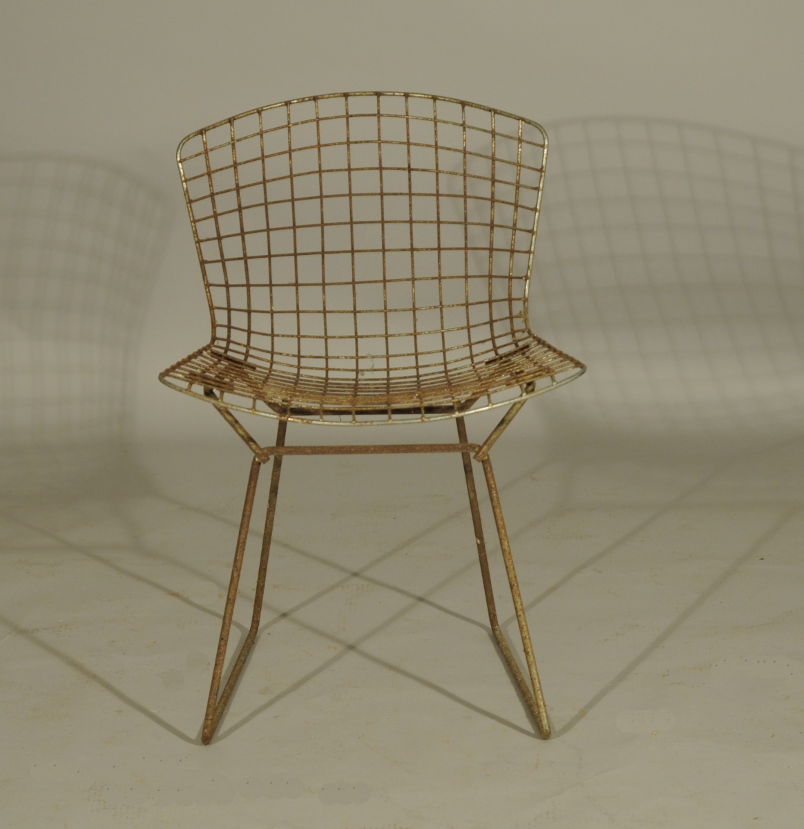 SUITE de QUATRE CHAISES Wire Fils. Structure en maille de fil d'acier cintré, soudé et chromé. Edition Knoll International. Années 1950-1960. Haut. 75, Larg. 53, Prof. 48 cm. (oxydations)