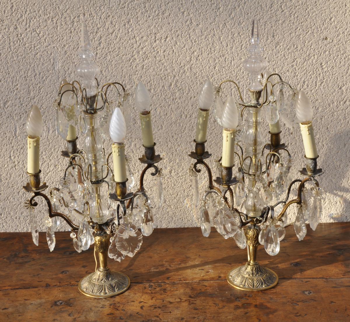 Paire de GIRANDOLES et LUSTRE. Les girandoles à quatre lumières...