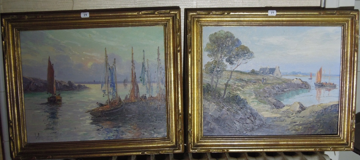 Paire de MARINES. Toiles signées en bas à gauche (ancien n°9).