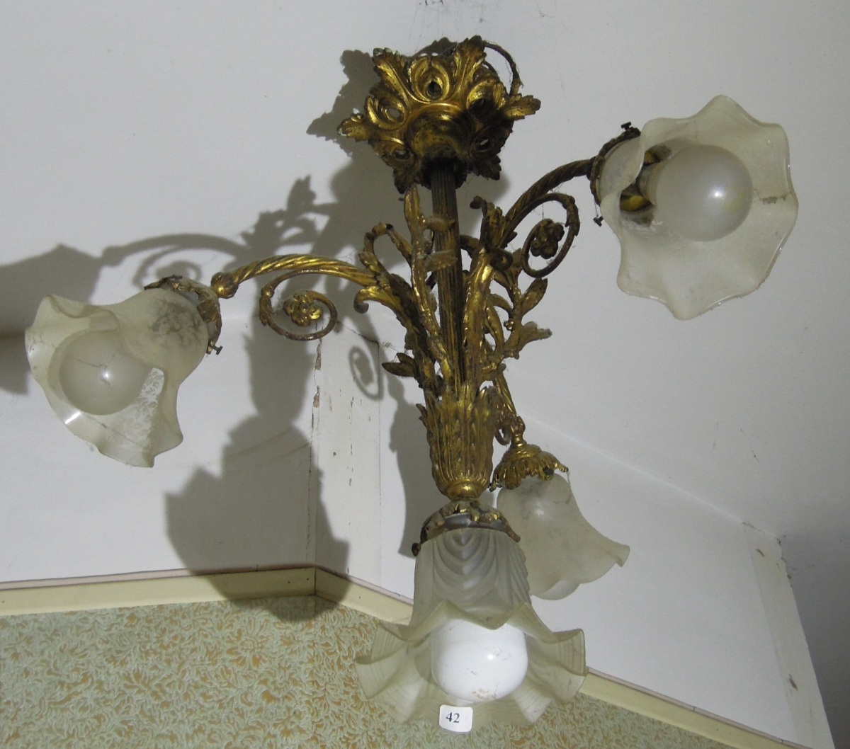 LUSTRE feuillagé en métal doré à quatre lumières (ancien n°37).