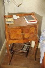 CHAMBRE À COUCHER comprenant : un LIT, un CHEVET en bois de placage style Louis XV, une petite COMMODE dessus marbre style Louis XVI, une table de malade et leurs contenus de bibelots (ancien n°31).