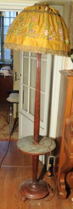 LAMPADAIRE formant guéridon en bois teinté, tablette marbre (ancien n°71).