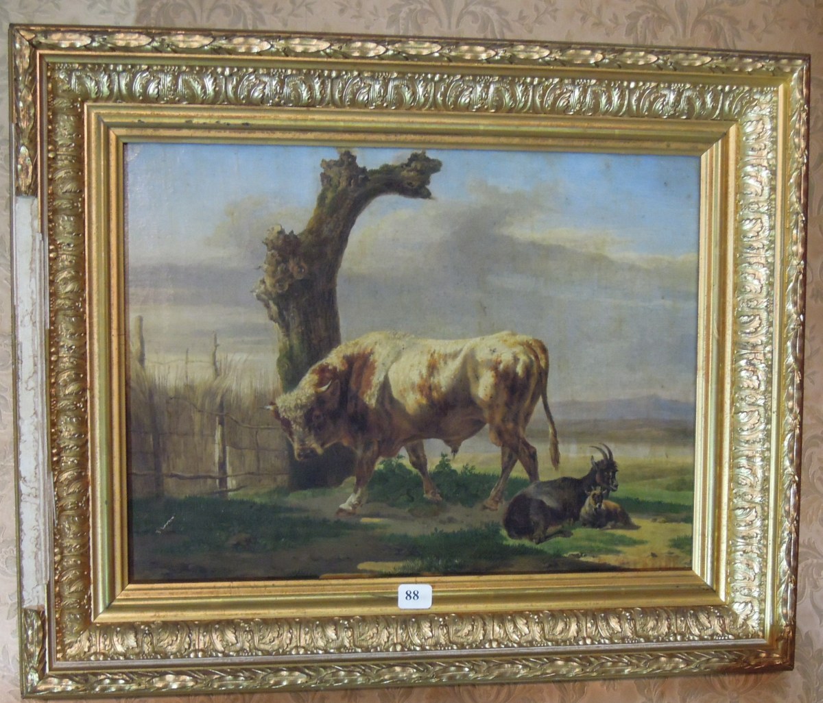DELATTRE. LE TAUREAU, LA CHÈVRE, ET SON PETIT. Toile signée. 28 x 37 cm (ancien n°58).