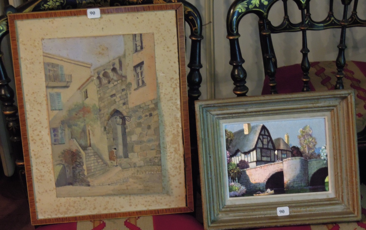 COUR MÉRIDIONALE. Aquarelle signée et datée 33.