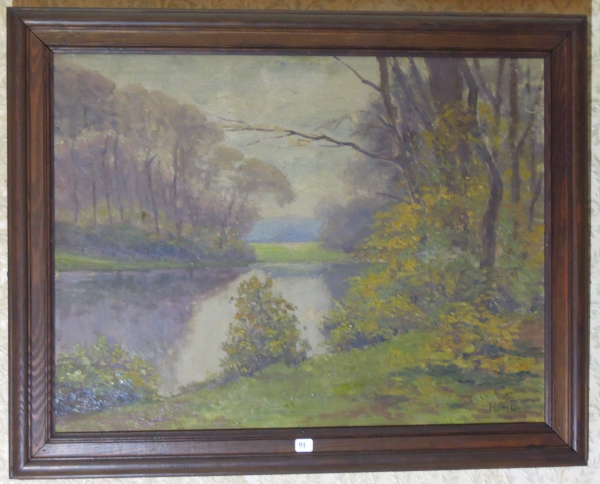 Henri DUMONT (1859-1921). ÉTANG À L'AUTOMNE. Toile signée. 48 x 64 cm (ancien n°65).