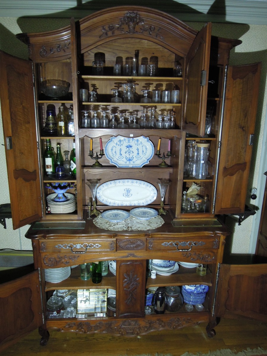 CONTENU du buffet aux quatre saisons : services de verres et cristaux, services en céramique : Gien, Limoge, service FLORA Creil Montereau, repose couteau