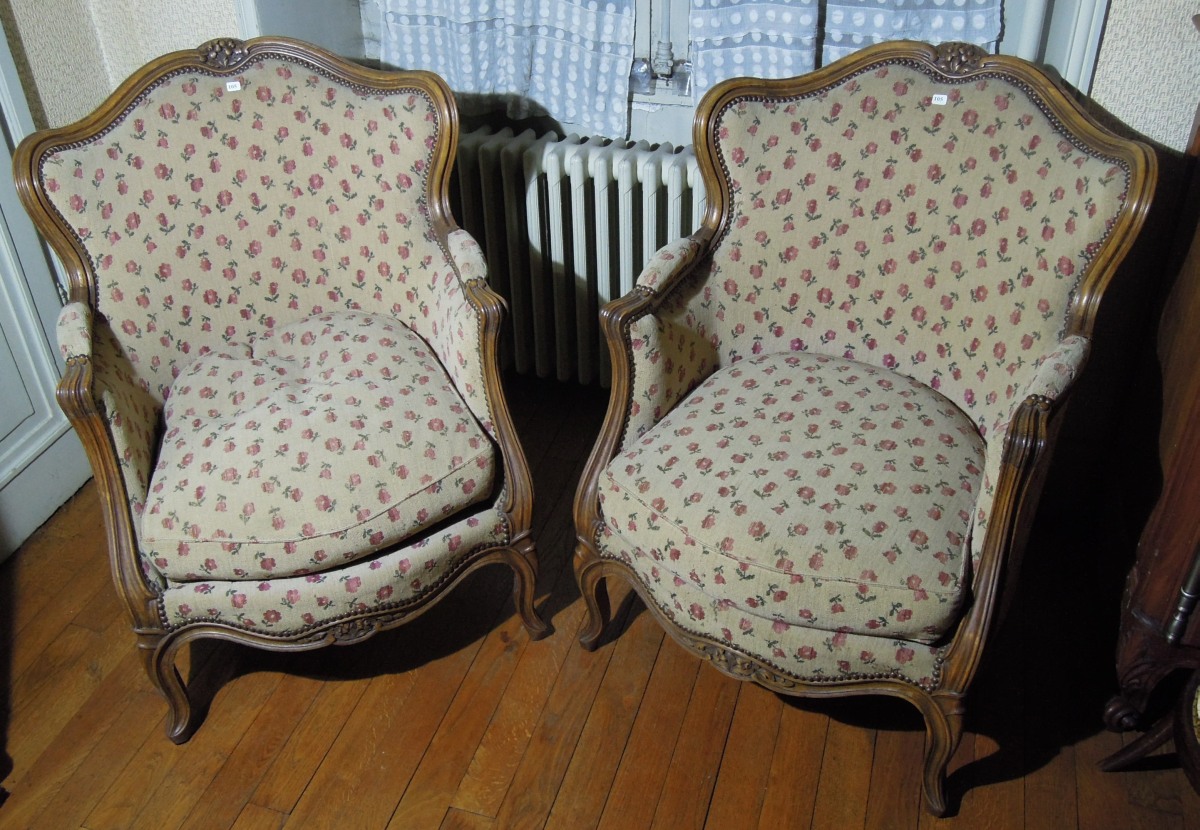 Paire de BERGÈRE en bois mouluré de style Louis XV (ancien n°74).