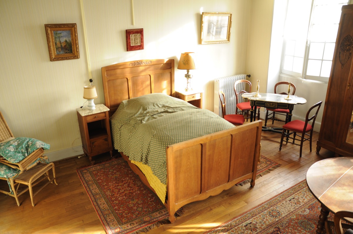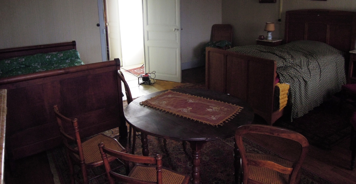 CHAMBRE À COUCHER comprenant : deux lits, deux lampes, deux chevets, une armoire à glace, une chaise longue en rotin, deux tapis et une suspension de style Art Déco. (anciens n° 102, 100).
