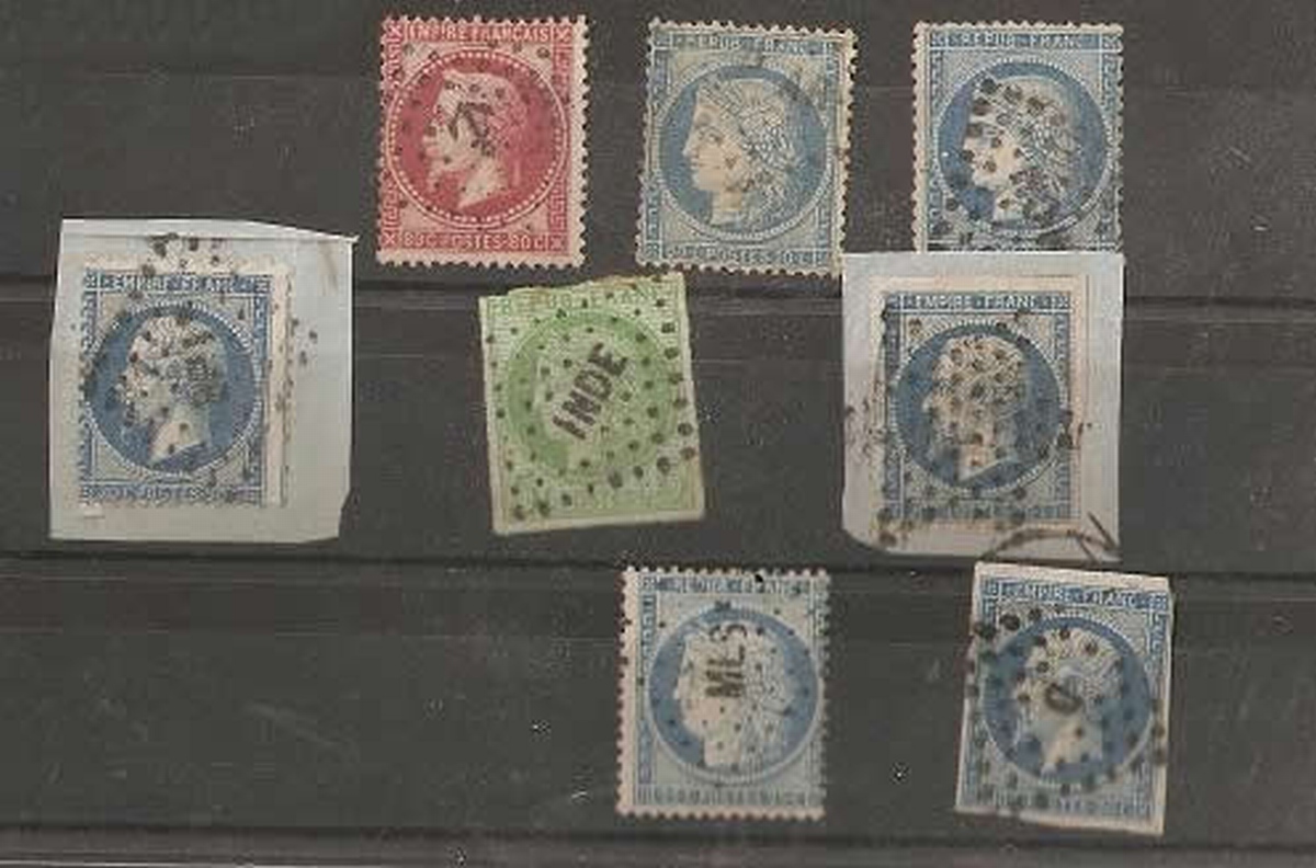 FRANCE. 8 Oblitérations ANCRE  INDE …. sur fragt. Anciens....