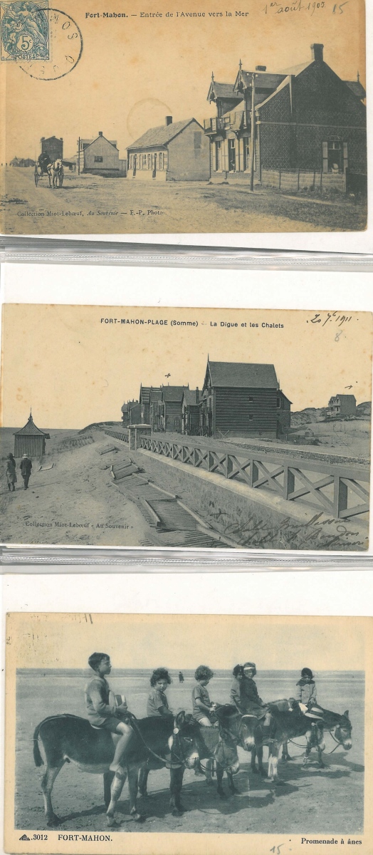 FORT-MAHON (Somme). 48 CARTES POSTALES dont : vues de la plage et des chalets, baigneurs, jeux de vacanciers, débarquement du poisson, procession... Début XXème.