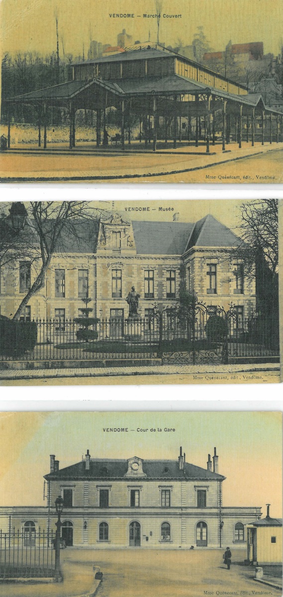 VENDÔME (Loir et Cher). Environ 70 CARTES POSTALES dont : les ruines du château, vues du Loir, le marché couvert, le faubourg Chartrain, la gare... Certaines en plusieurs exemplaires. Début XXème.