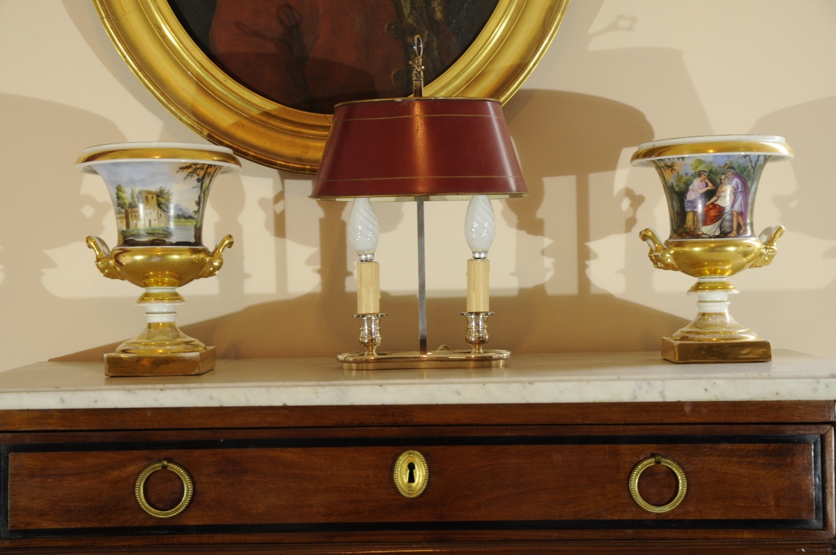 Paire de VASES Médicis en porcelaine à décor peint d'un...