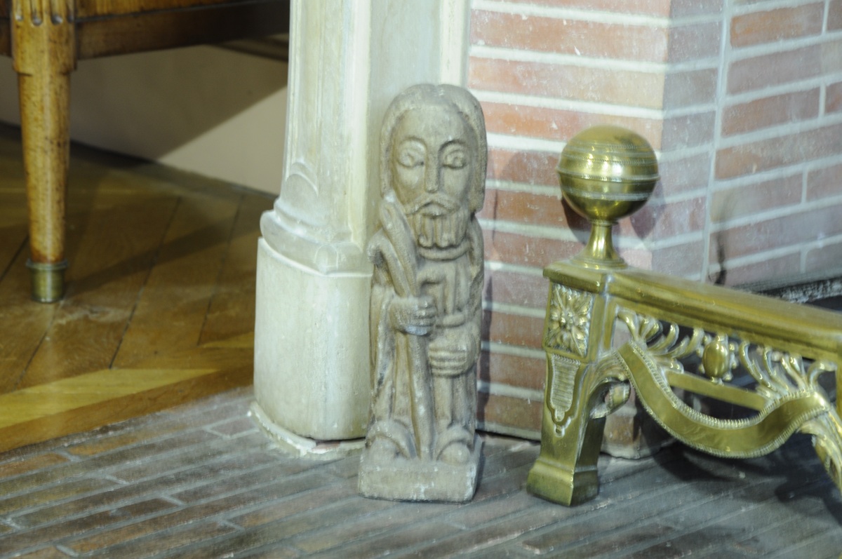 Deux PERSONNAGES en pierre et plâtre. Travail moderne de style gothique et oriental. Hauteur : 27 et 38 cm (accidents).