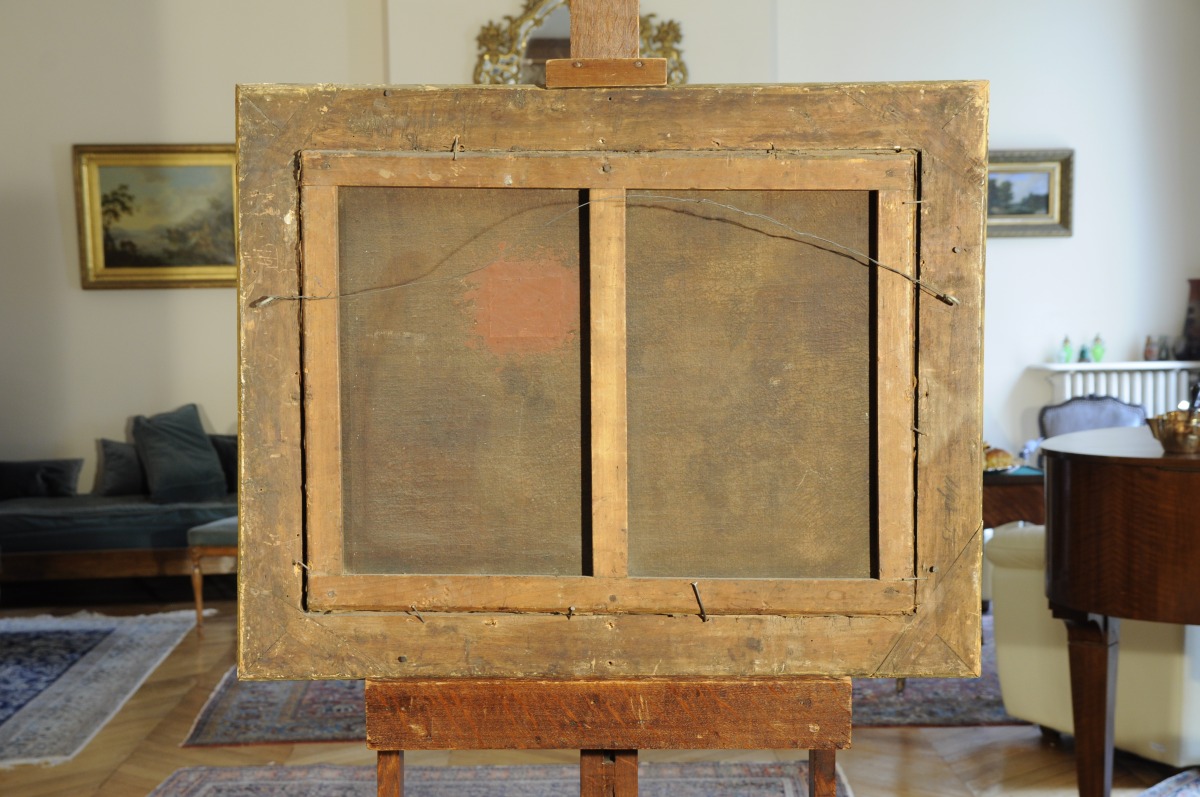 École FRANÇAISE vers 1830.Officier et sa famille dans un paysage.Toile.47...