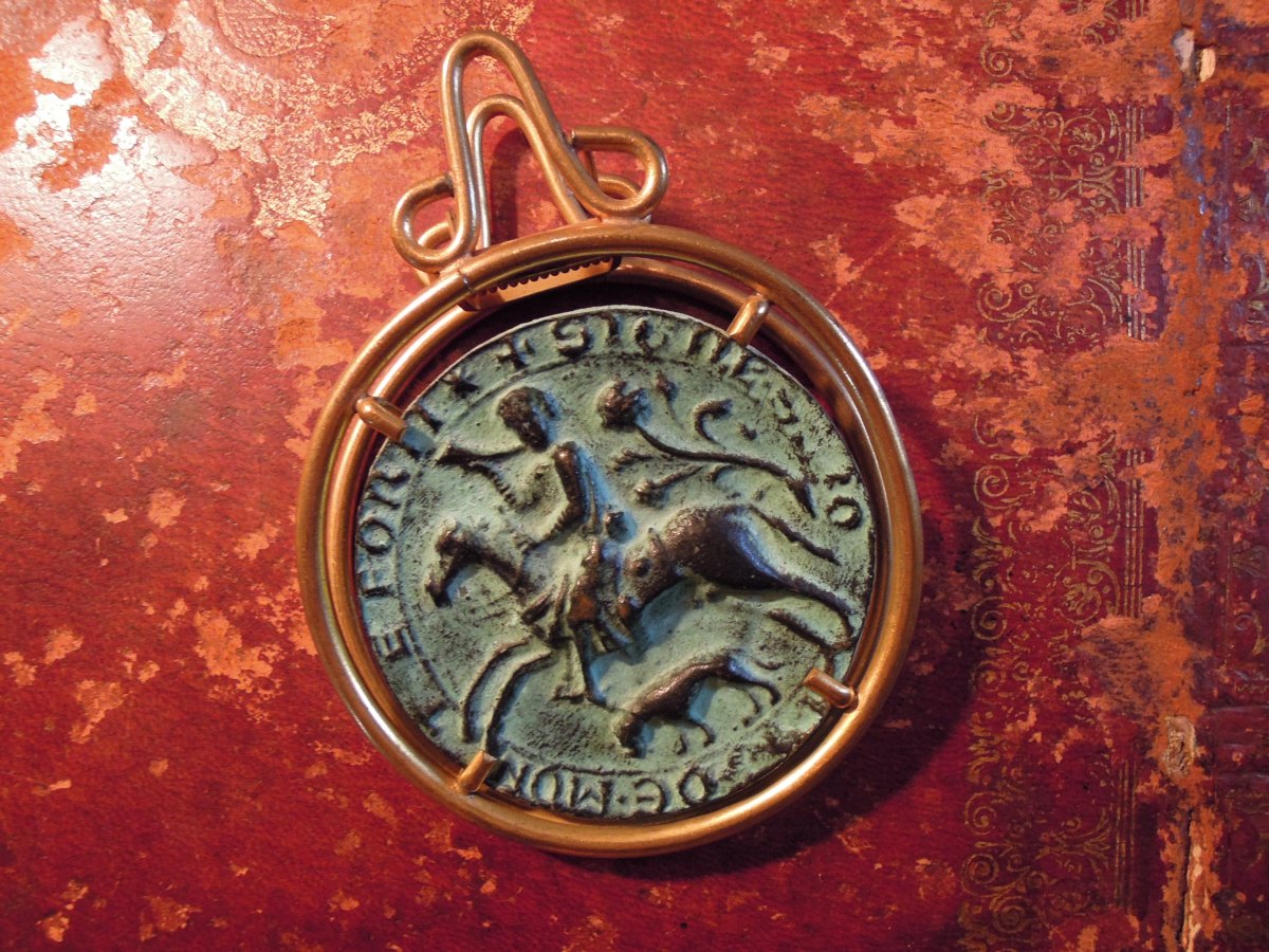 orné d'une médaille en bronze d'un veneur (Diam. 6,5 cm), SCEAU en