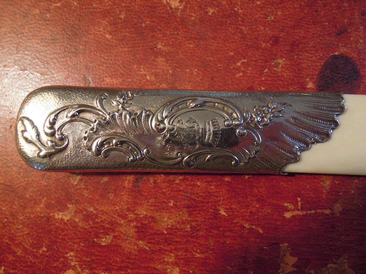 manche en argent à motifs de roses et de feuillage, avec un monogramme