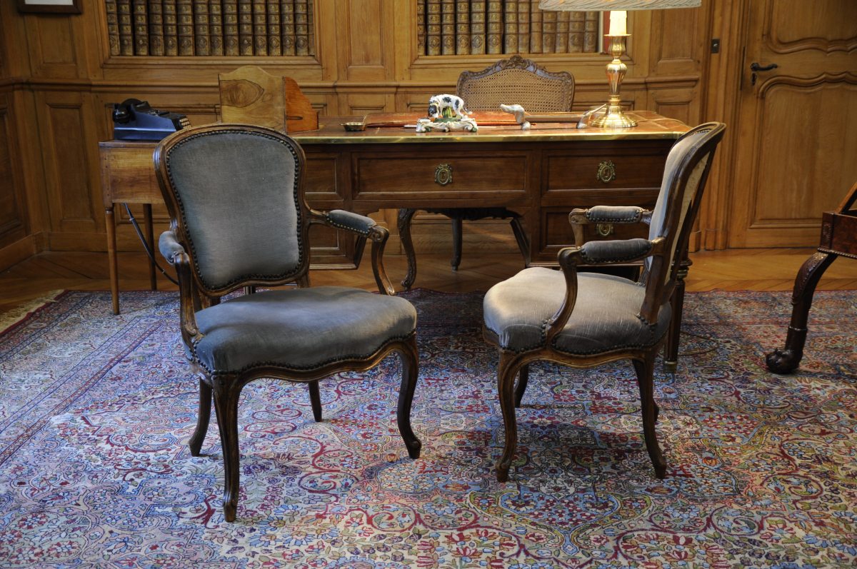 Paire de FAUTEUILS CABRIOLETS en bois, accotoirs nervurés à manchettes en coup de fouet tombant en retrait de la ceinture chantournée et contournée, reposant sur quatre pieds galbés. Estampillés "I AVISSE". Jean Avisse, menuisier reçu maître le 10 novembre 1745.