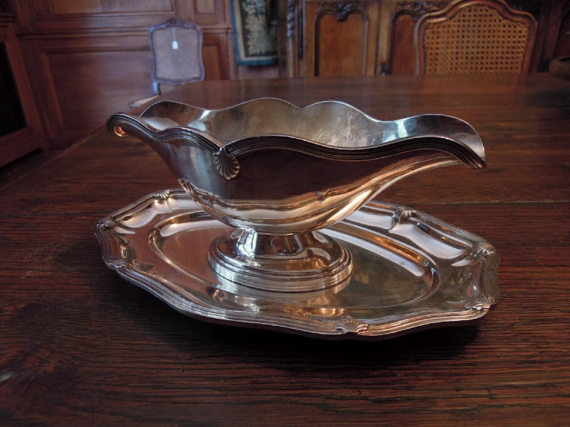 SAUCIÈRE SUR PLATEAU, batte contour de style Louis XV à...