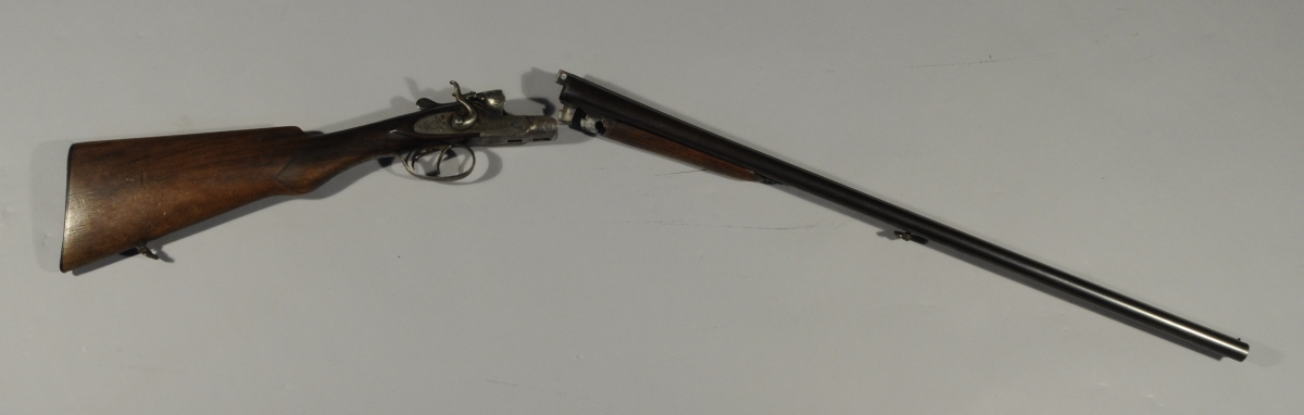 FUSIL de CHASSE deux coups, chiens extérieurs. Calibre 16. Deux canons en table.