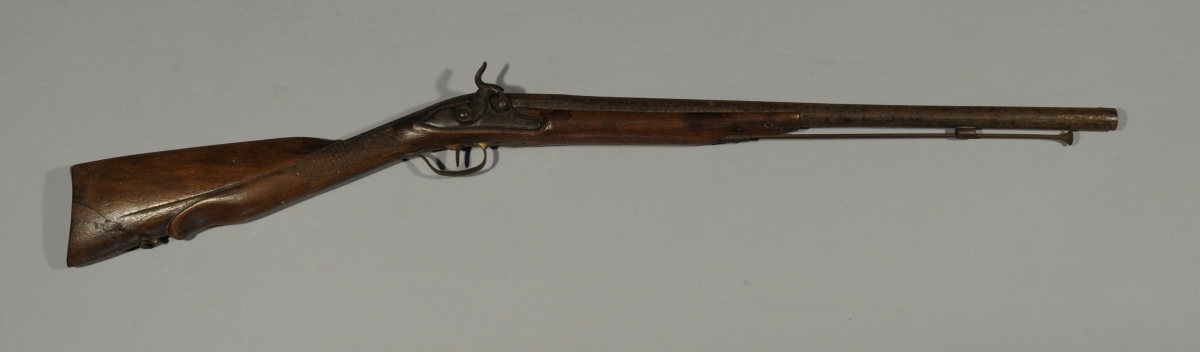 FUSIL DE CHASSE D'ENFANT. Mécanisme à percussion. Canon rond à pans au tonnerre. Crosse en noyer sculpté et guilloché. XIXème. Long. 78 cm.