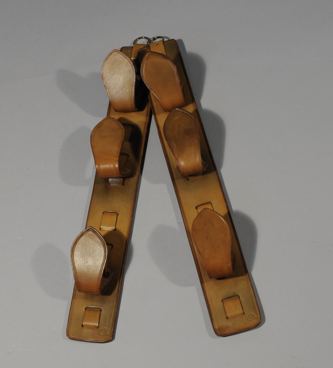 PRESENTOIR MURAL en cuir à trois fusils. Deux éléments signés Gil.