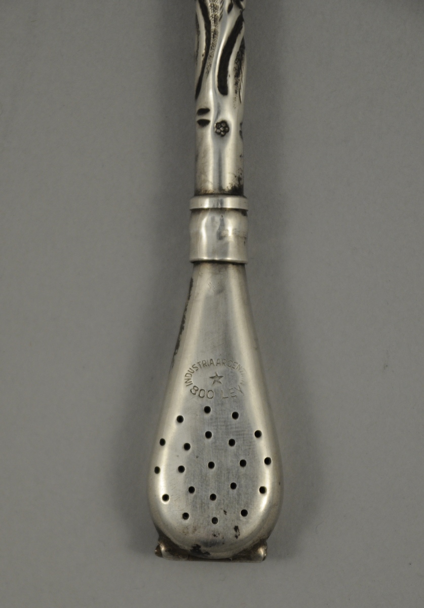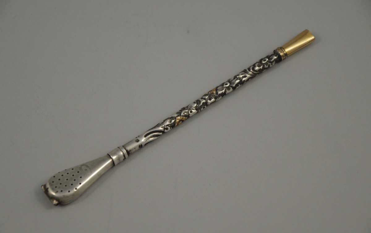 PIPE À OPIUM en argent et vermeil, embout en or. Travail argentin du XXème. Long. 20,4 cm.