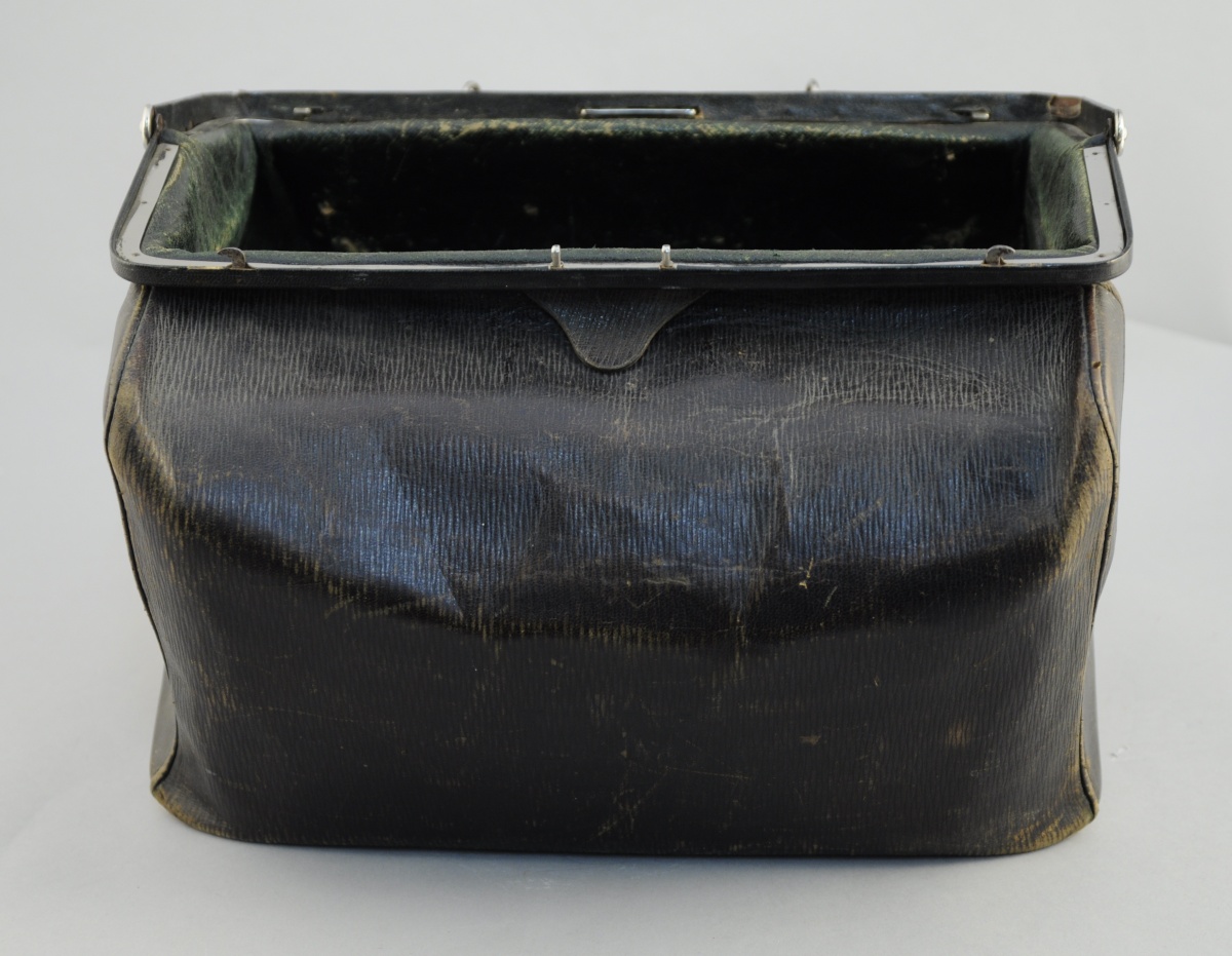 SAC en cuir noir, monogrammé L.M.Début XXème.Haut. 25, Larg. 40,...