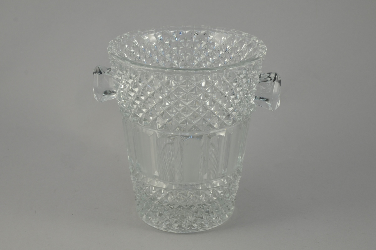 SEAU à CHAMPAGNE en verre pressé-moulé décoré de pointes de diamant et larges cannelures. Les prises en forme de losange. XXème.