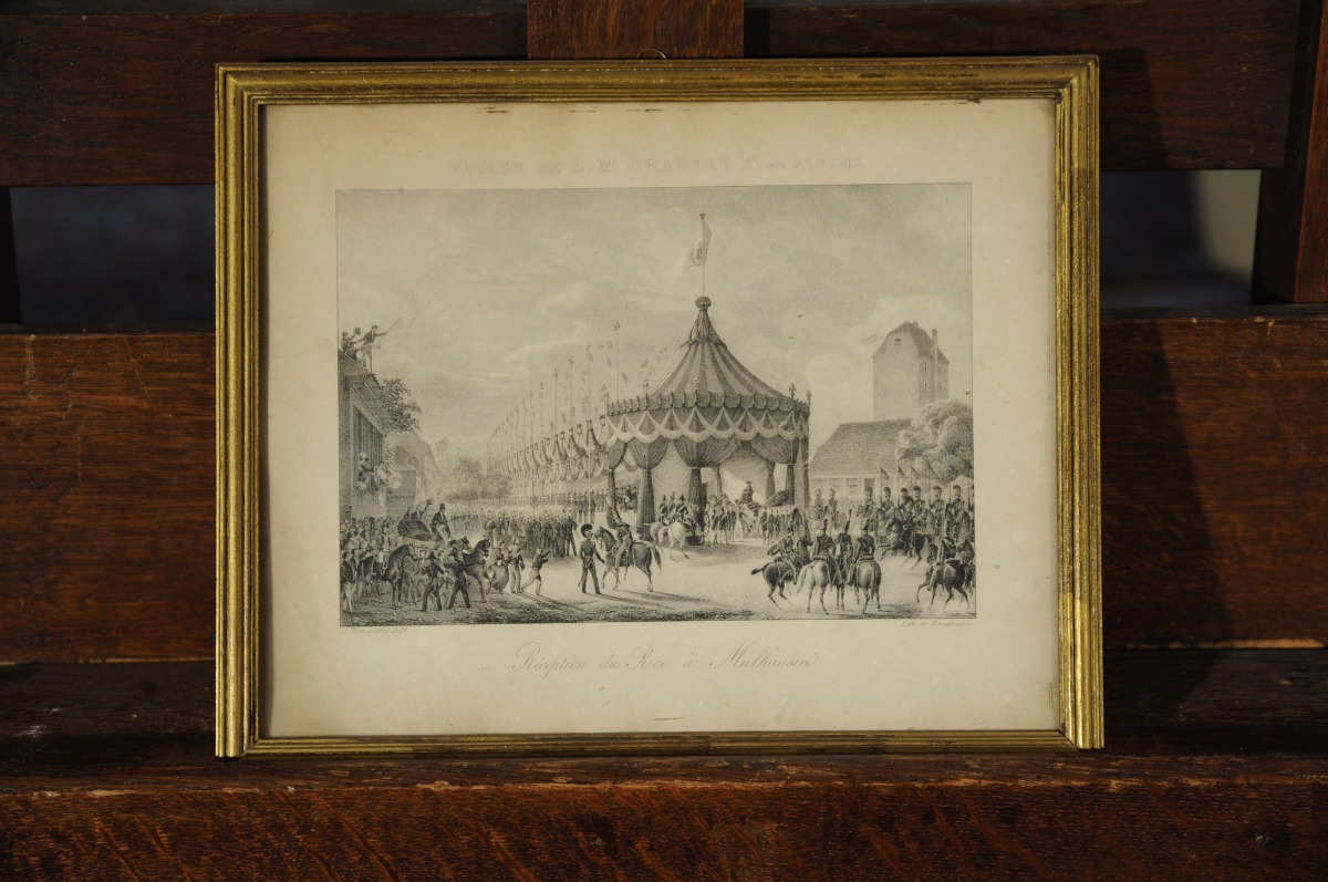 Gravure d’après RATHMÜLLER.Réception du roi à Mulhouse.