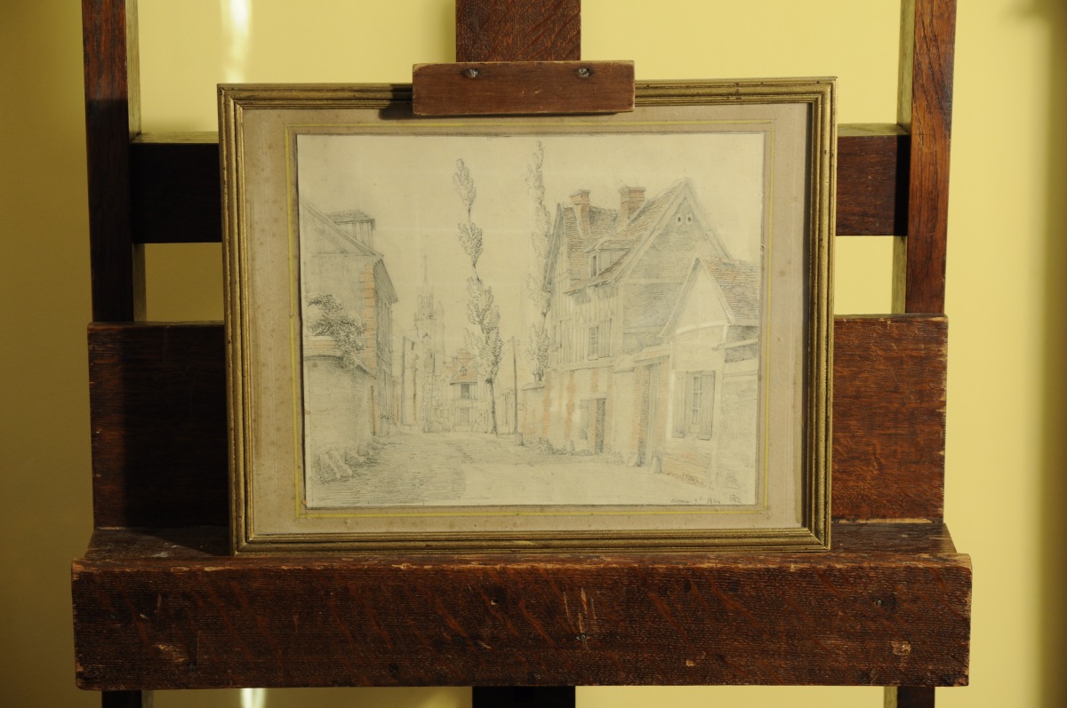 École FRANÇAISE en 1844.Évreux.Crayon noir et crayon rouge.22 x 27...