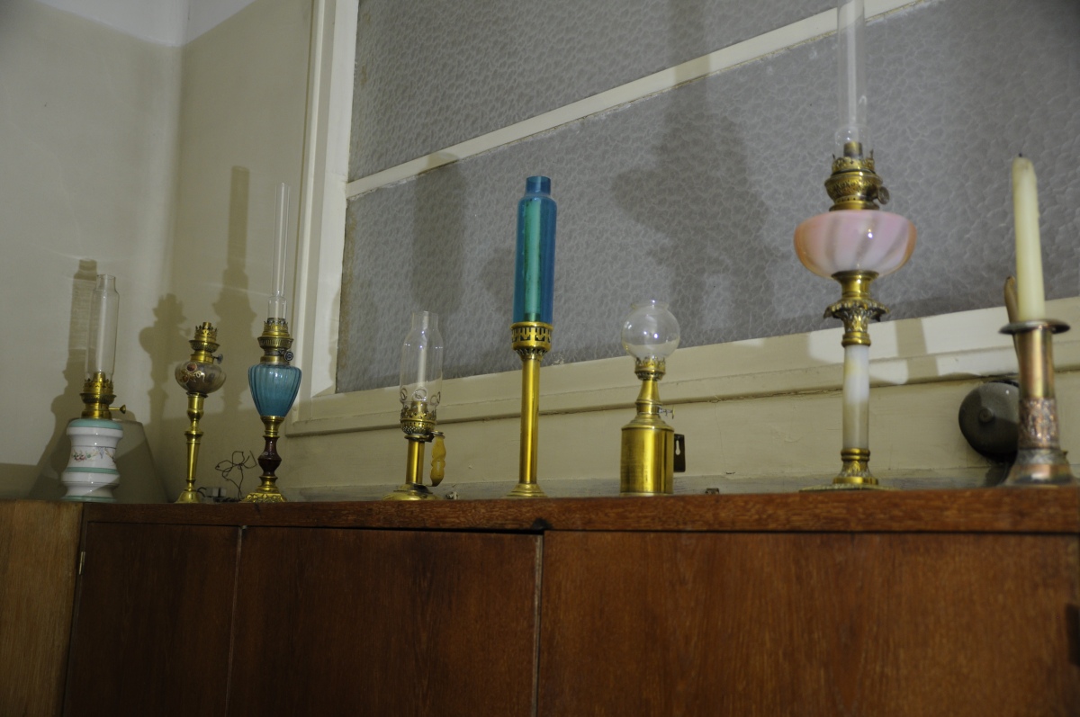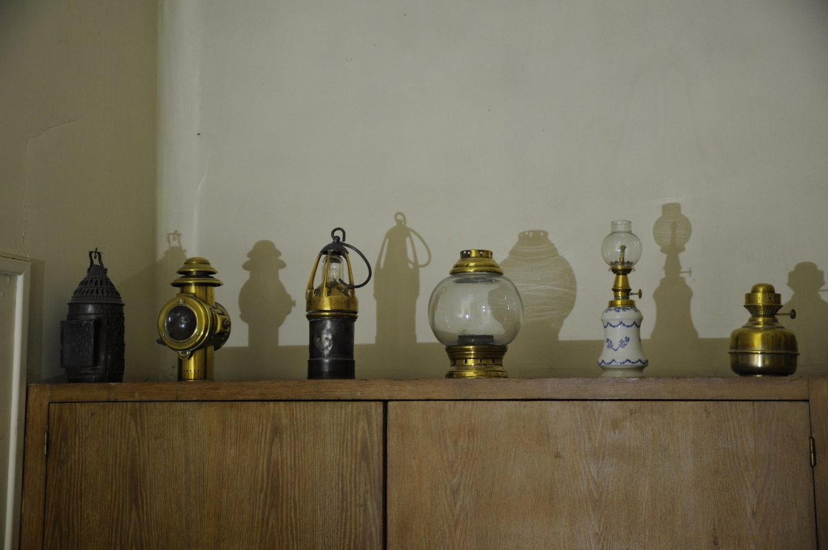 Trois LANTERNES en cuivre et métal et quinze LAMPES A HUILE et BOUGEOIRS de factures diverses (manques, accidents).