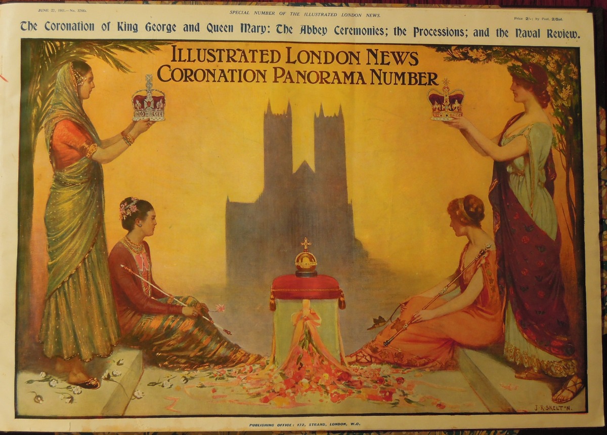Numéro spécial du London Illustrated News, panorama in folio du 17 juillet 1911. Reliure à demi-maroquin avec un ex-libris aux armes des Biencourt-Poncins.