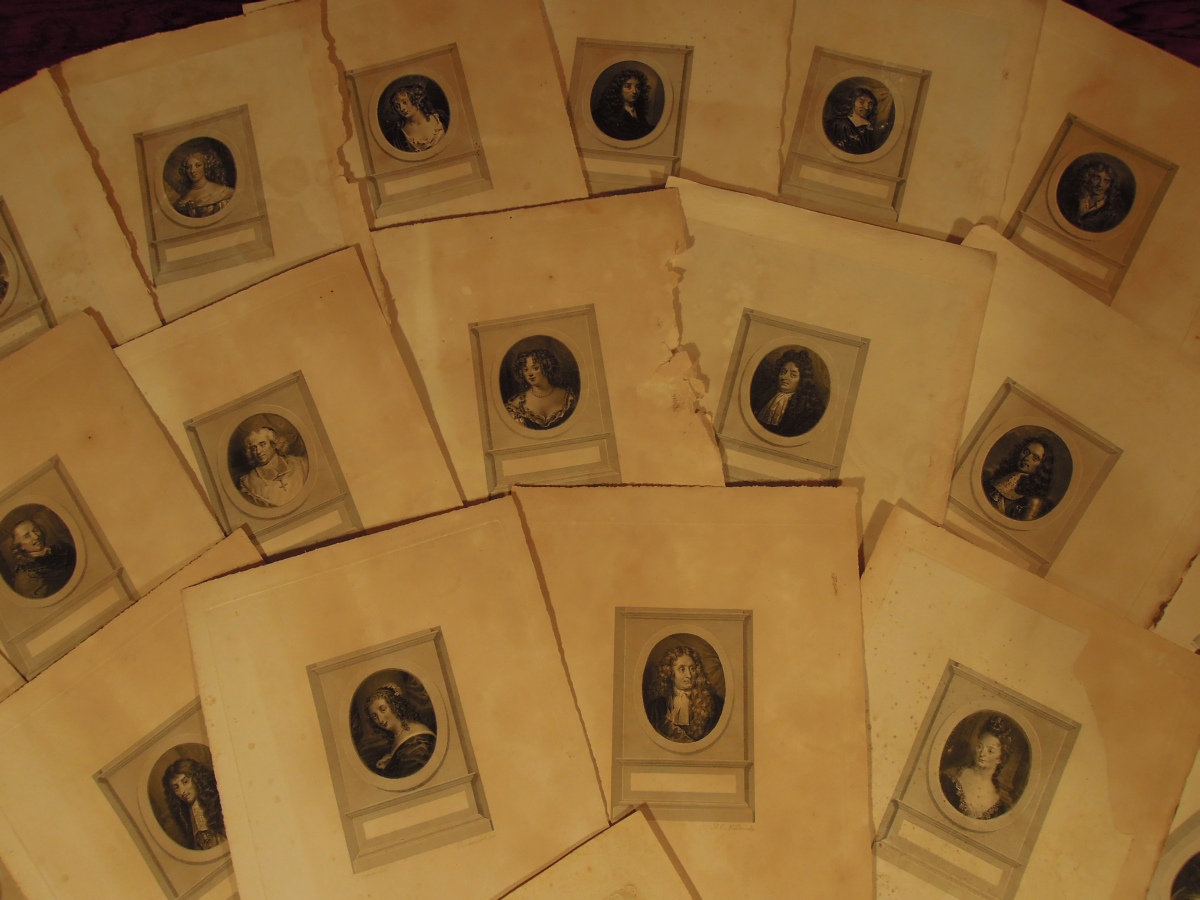 GENS DE LETTRE. Suite de 24 gravures d'après les dessins de DEVARIA, 1822, dont : Descarte, Molière, Sévigné, Lafayette, Sully, Racine, Bossuet