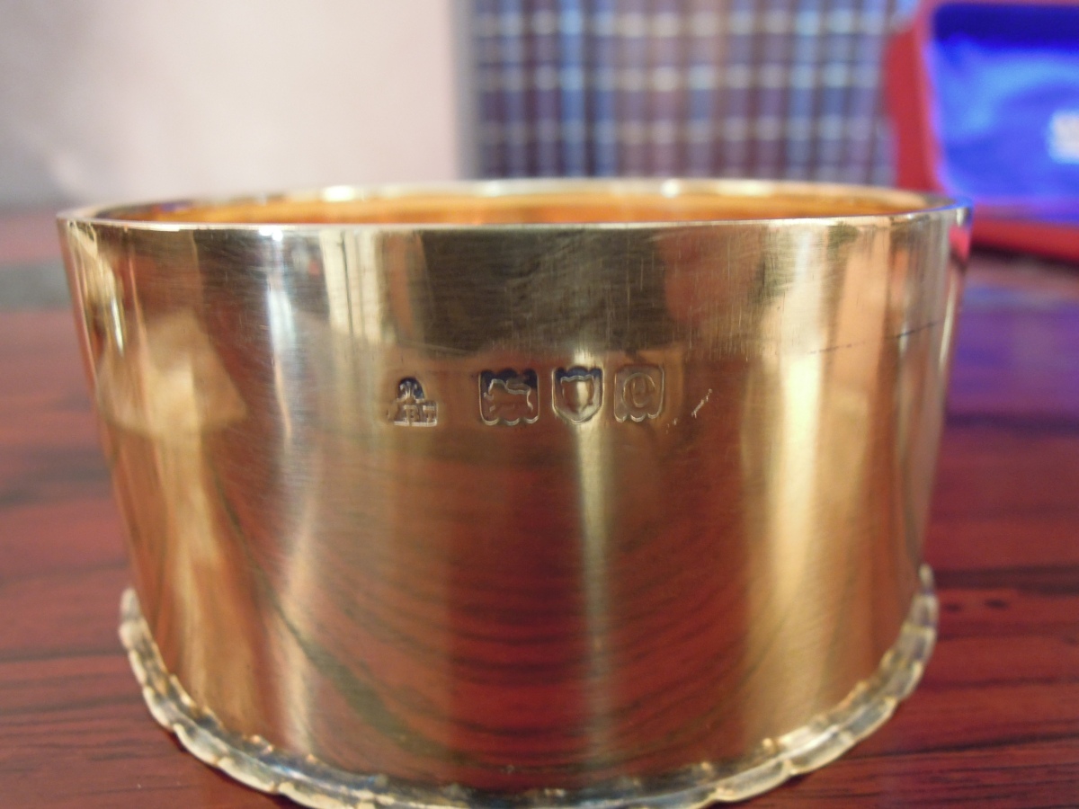 THOMAS. Paire de BOITES rondes en vermeil, le couvercle en repoussé à motif d'une fleur rayonnante. Dans un écrin en cuir rouge marqué F.B. THOMAS & COMPANY Goldsmith & Silversmith 152 New Bond St.