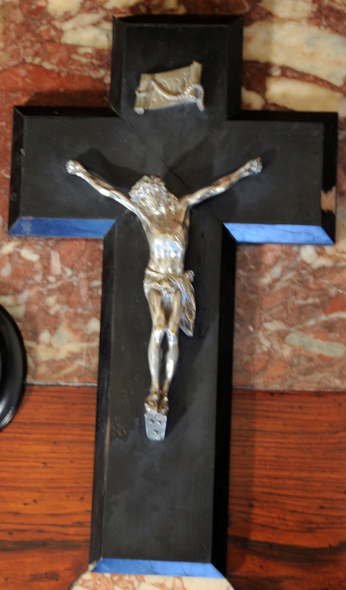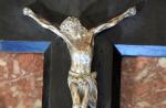 CRUCIFIX en bronze argenté sur une croix en placage d'ébène. Fin XIXème.