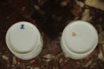 Haut. 7,3, Diam. 5,5 cm (accident à un couvercle, un corps ébréché et usure à l'or.)