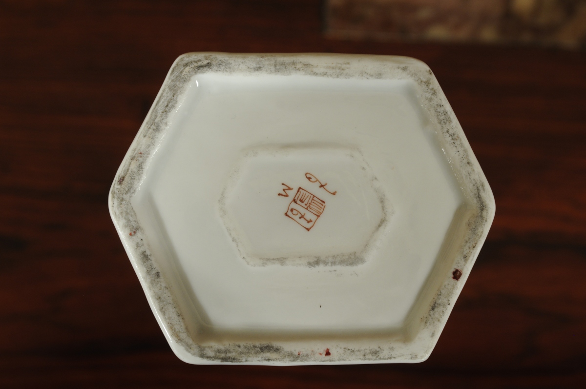 POT COUVERT de forme circulaire en porcelaine à décor polychrome fleuri dit de la " famille rose ". Diam. 12,5 cm.