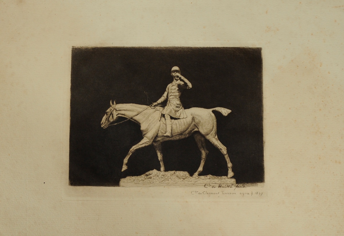 Veneur d'après la sculpture du Comte de Ruillé. Eau-forte signée et datée 1897.