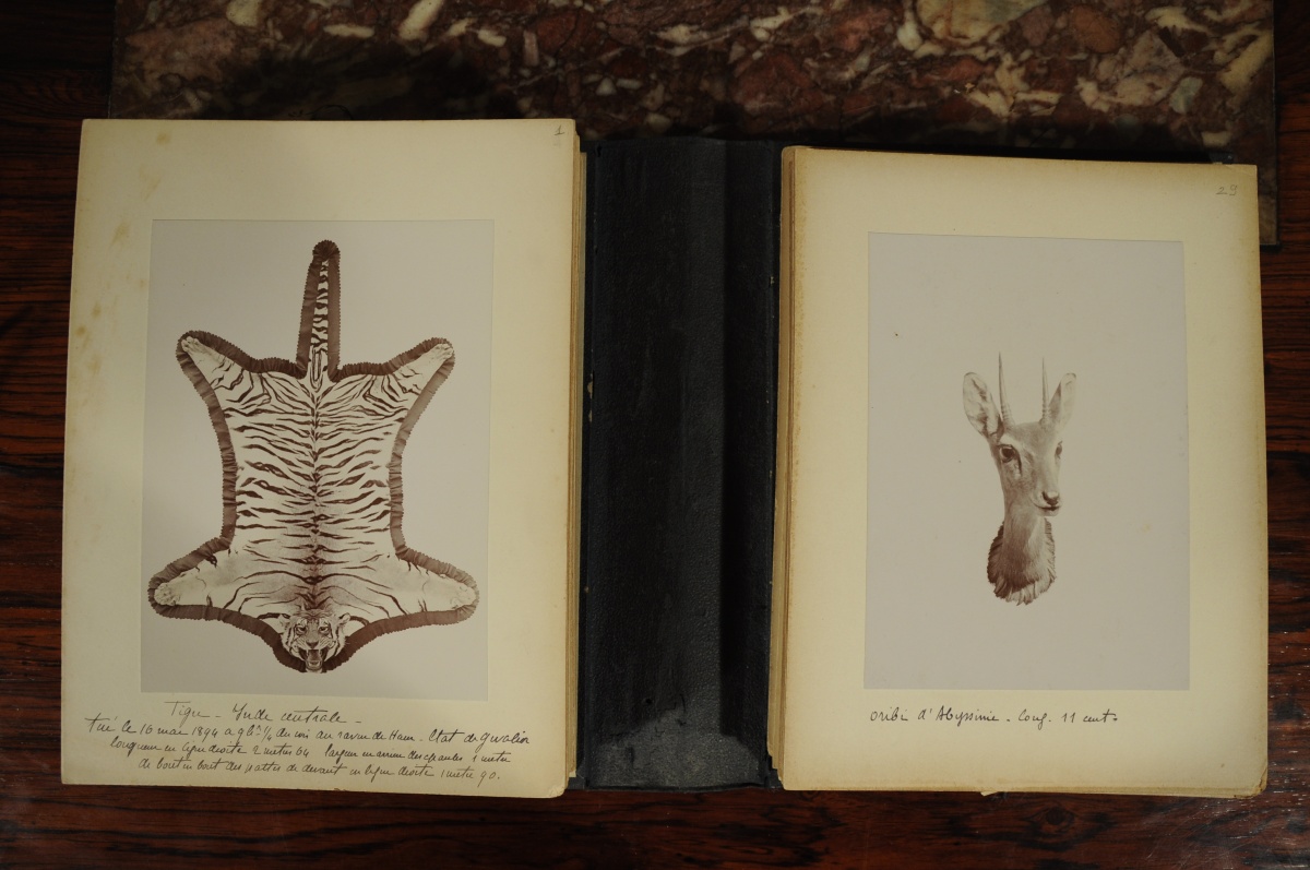 Photographies de "cerfs, gazelles, antilopes, sangliers, tués depuis le 28 août 1886. Collection Poncins".