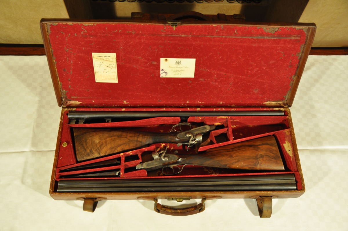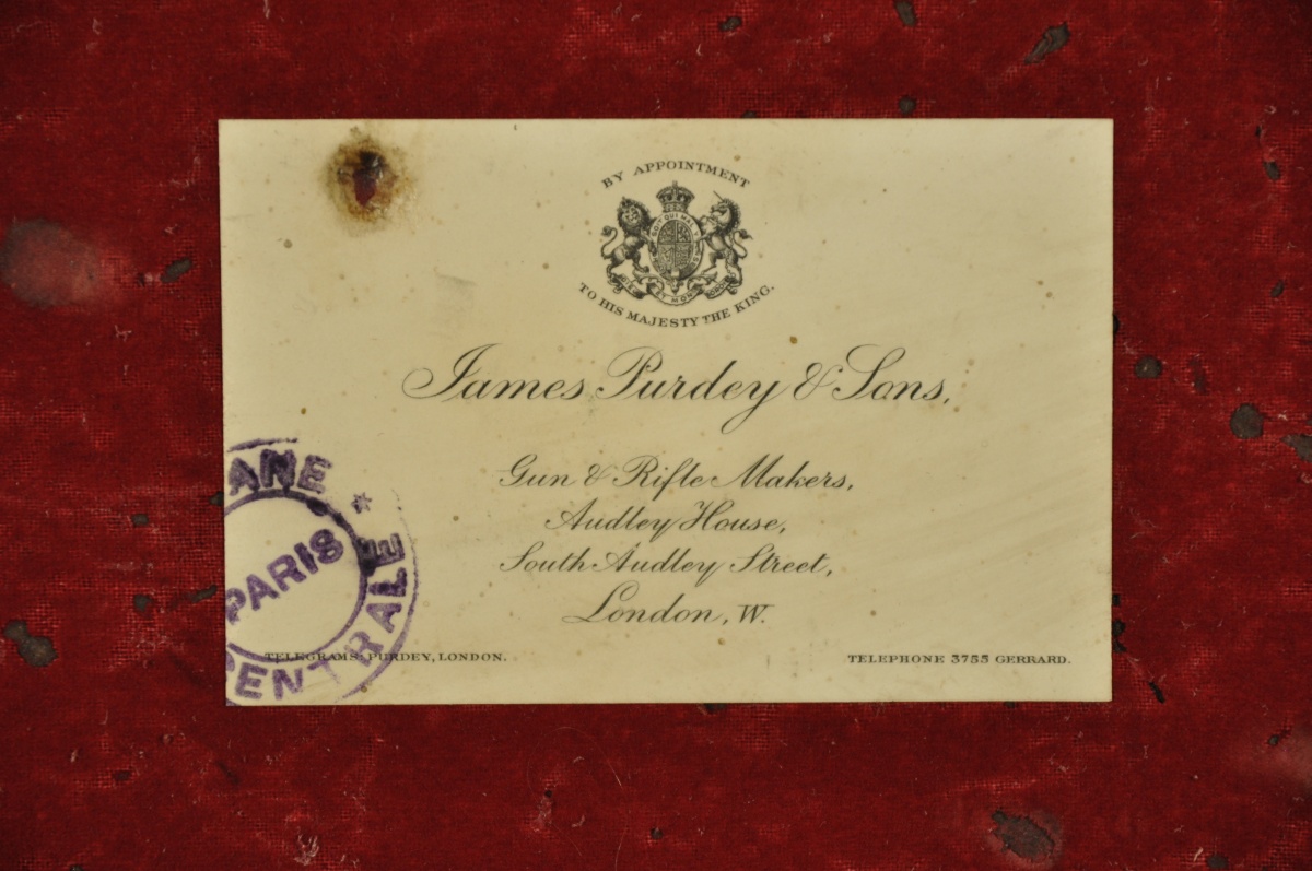 Dans une valise en cuir de J. Purdey (intérieur en drap rouge mité).