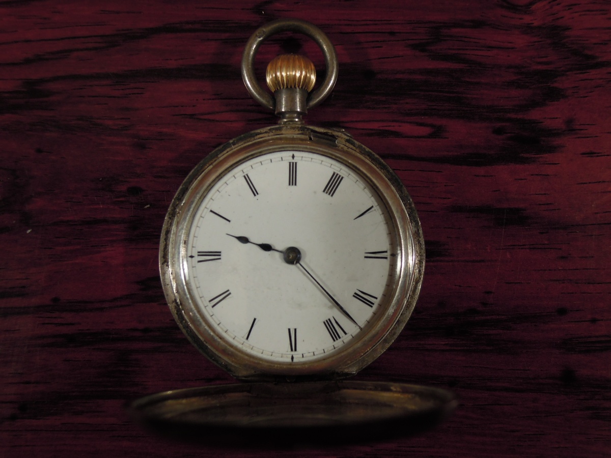 MONTRE de CHASSE à remontoir, boîtier de protection en argent gravé des heures en chiffres romains, cadran émaillé gravé des heures en chiffres romains. Fin XIXème. Poids brut : 48g.