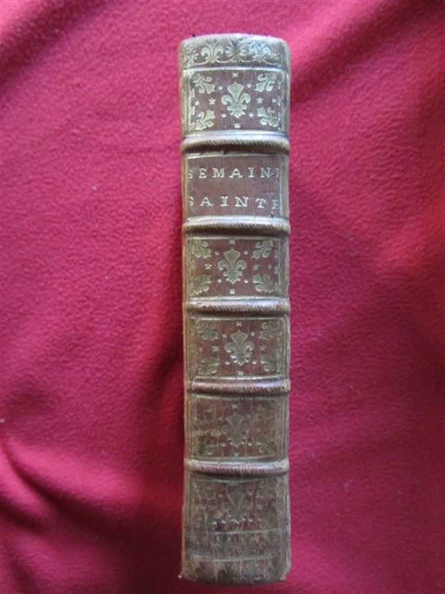 Office de la Semaine Sainte dédié à la Reine pour l'usage de sa maison. Paris, chez la veuve Mazières, 1728. In-8, environ 700 p avec planches et culs de lampe. Ex-libris Comte de Poncins. Reliure en plein maroquin, premier et dernier plat armoriés aux armes de Marie Linzcinska, reine de France.