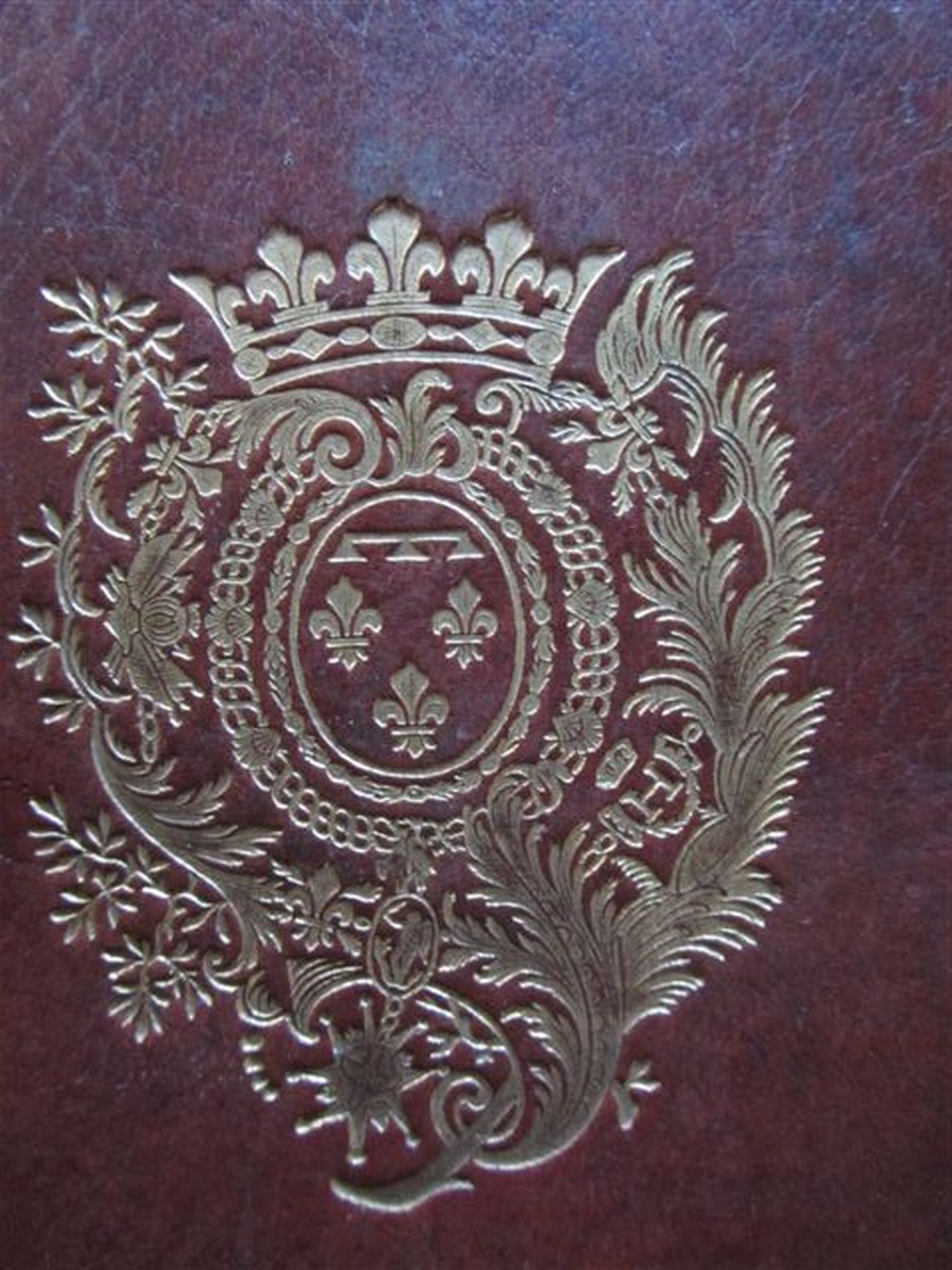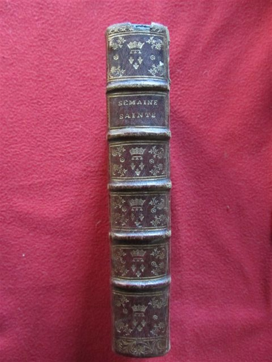 L'Office de la quinzaine de Pasque pour la maison d'Orléans. Paris, Houry, 1753. Grand in-8, 633 pages. Ex-libris du Comte de Poncins d'Orléans. Belle reliure en plein veau, premier et dernier plat aux armes d'Orléans, couronne princière.
