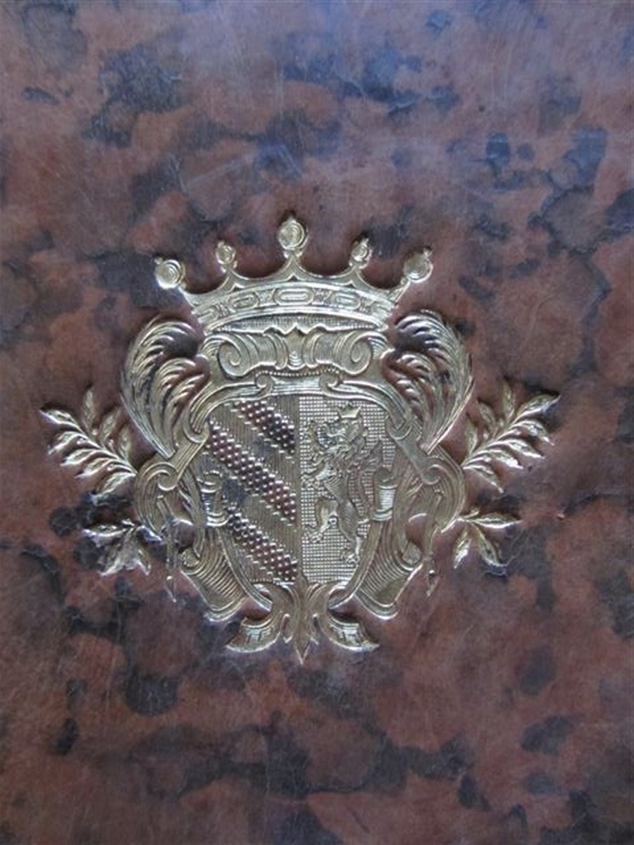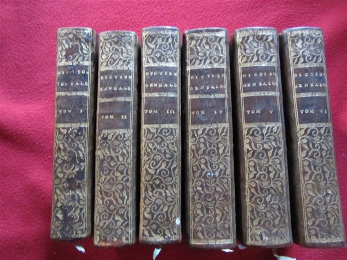 M. de LA CHESNAYE DES BOIS. Dictionnaire généalogique, héraldique chronologique et historique. Paris, Duchesne, 1757. Six volumes in-12 d'environ 580 pages. Ex-Libris : marquis de Biencourt, Vicomte Edmond de Poncins. Belle reliure en plein veau, les deux plats armoriés Biencourt-Poncins, le dos finement gaufré à l'or