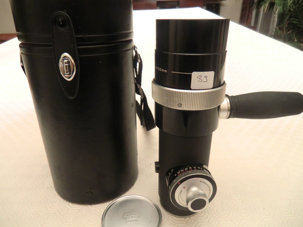 Objectif ZEISS SONNAR 1:4 f=250mm + poignée + étui, marque CONTAX, n°3671596.