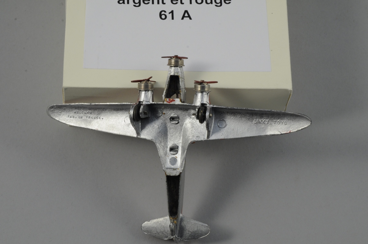 DINKY TOYS. DEWOITINE D 338, Ligne Air France - Marseille-Saïgon, argent et rouge, réf. 61 A. Sans boîte.