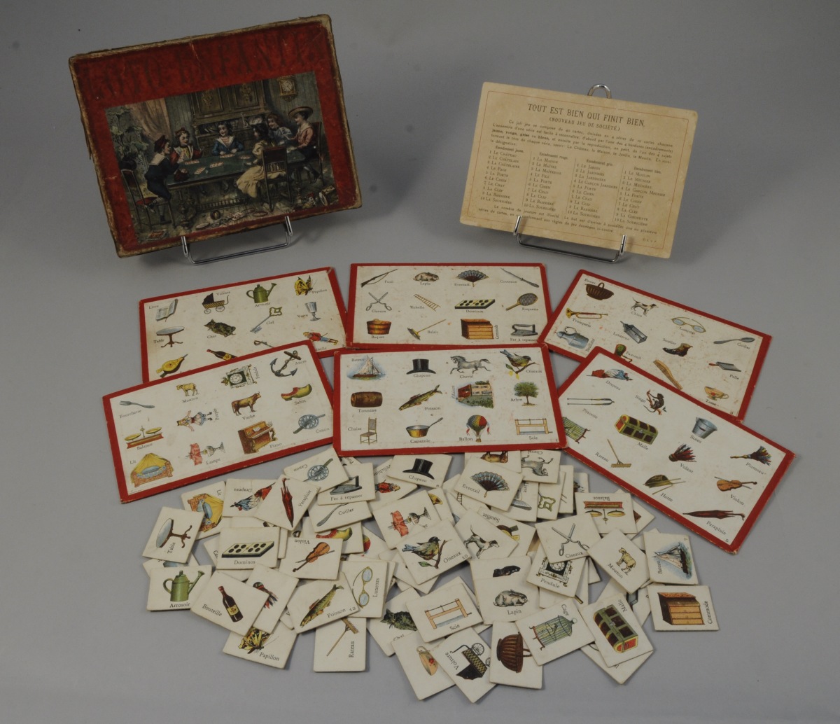 JEU de LOTO "Loto Enfantin". Avec boîte et notice. Vers 1900. (manque des cartes, usures au cartonnage)