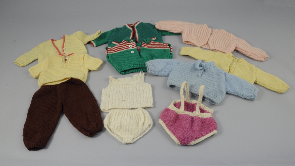 JOINT : ensemble comprenant 17 vêtements et une paire de chaussures, la plupart en tricot.