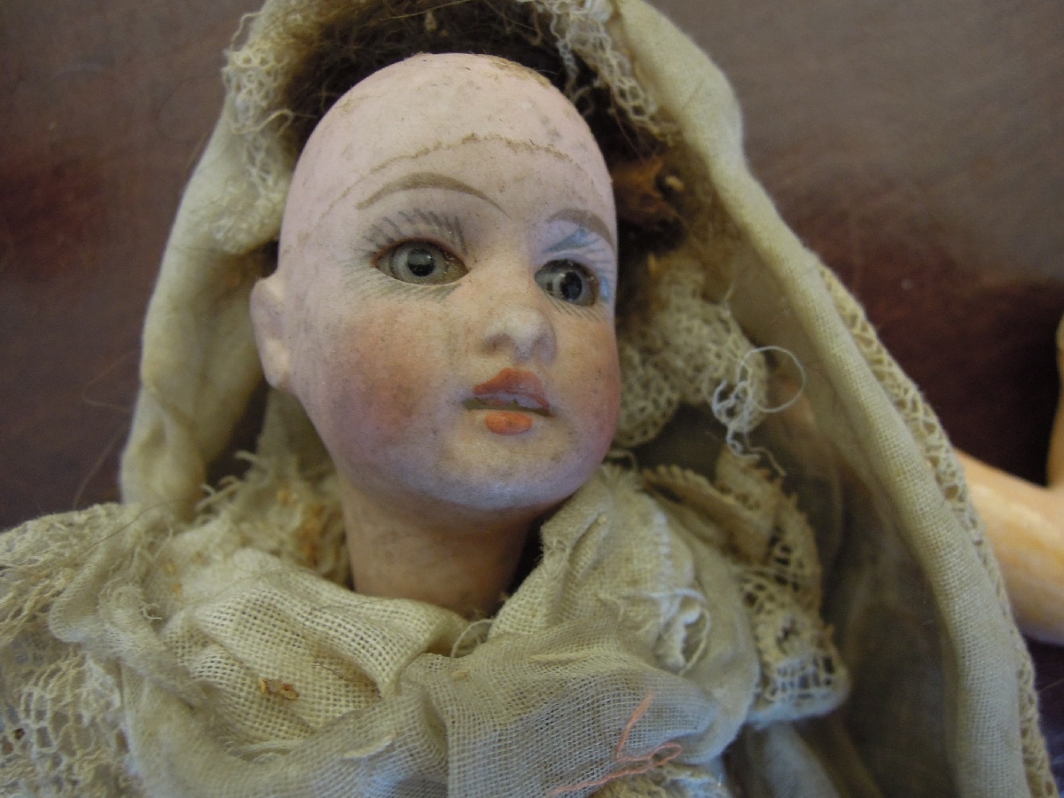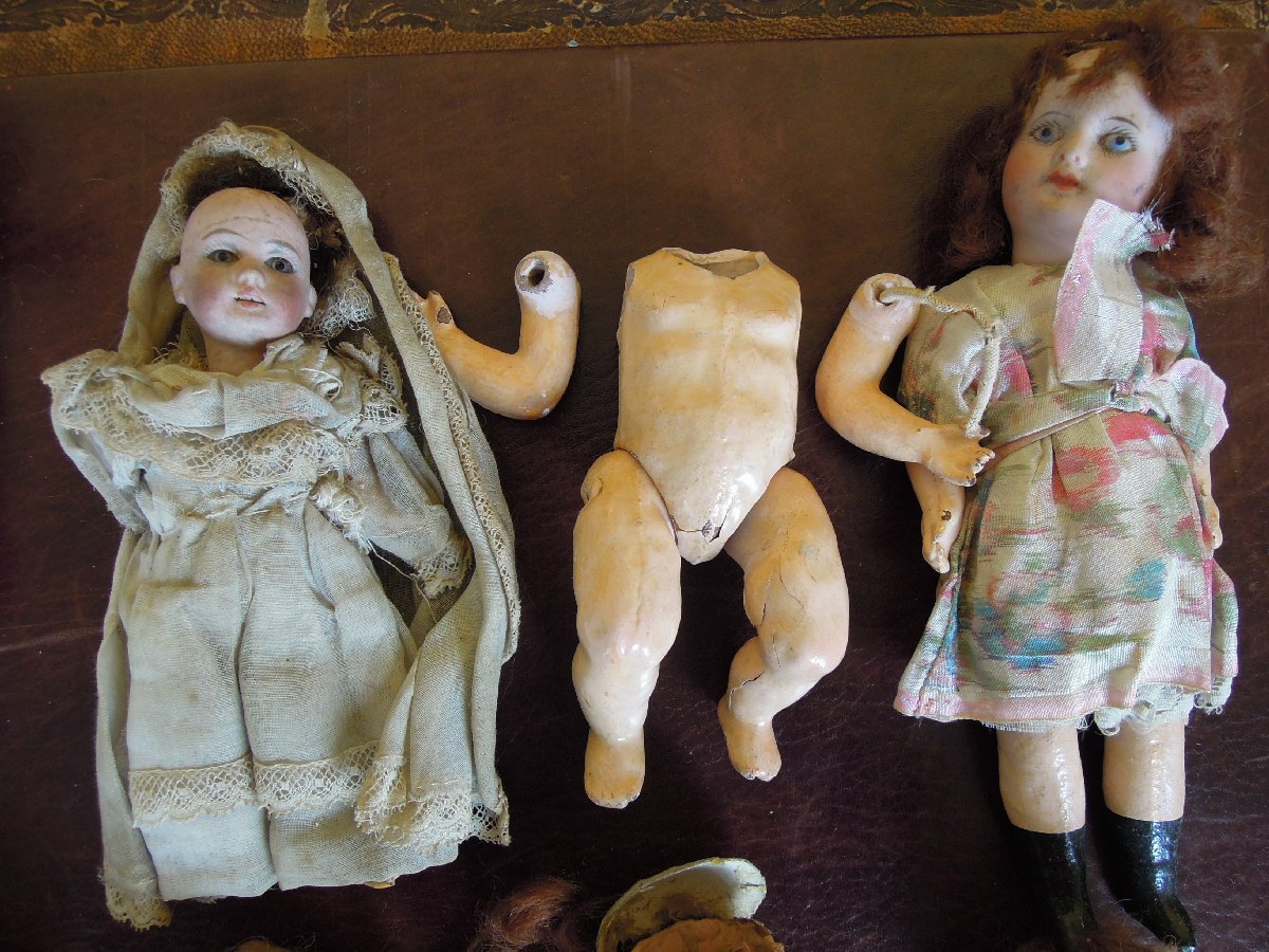 13 petites POUPEES, neuf à tête de porcelaine, certaines marquées SFBJ.