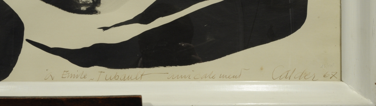 Gouache sur papier, dédicacée, signée, datée en bas à droite : "A Emile Jubault amicalement Calder 1967".